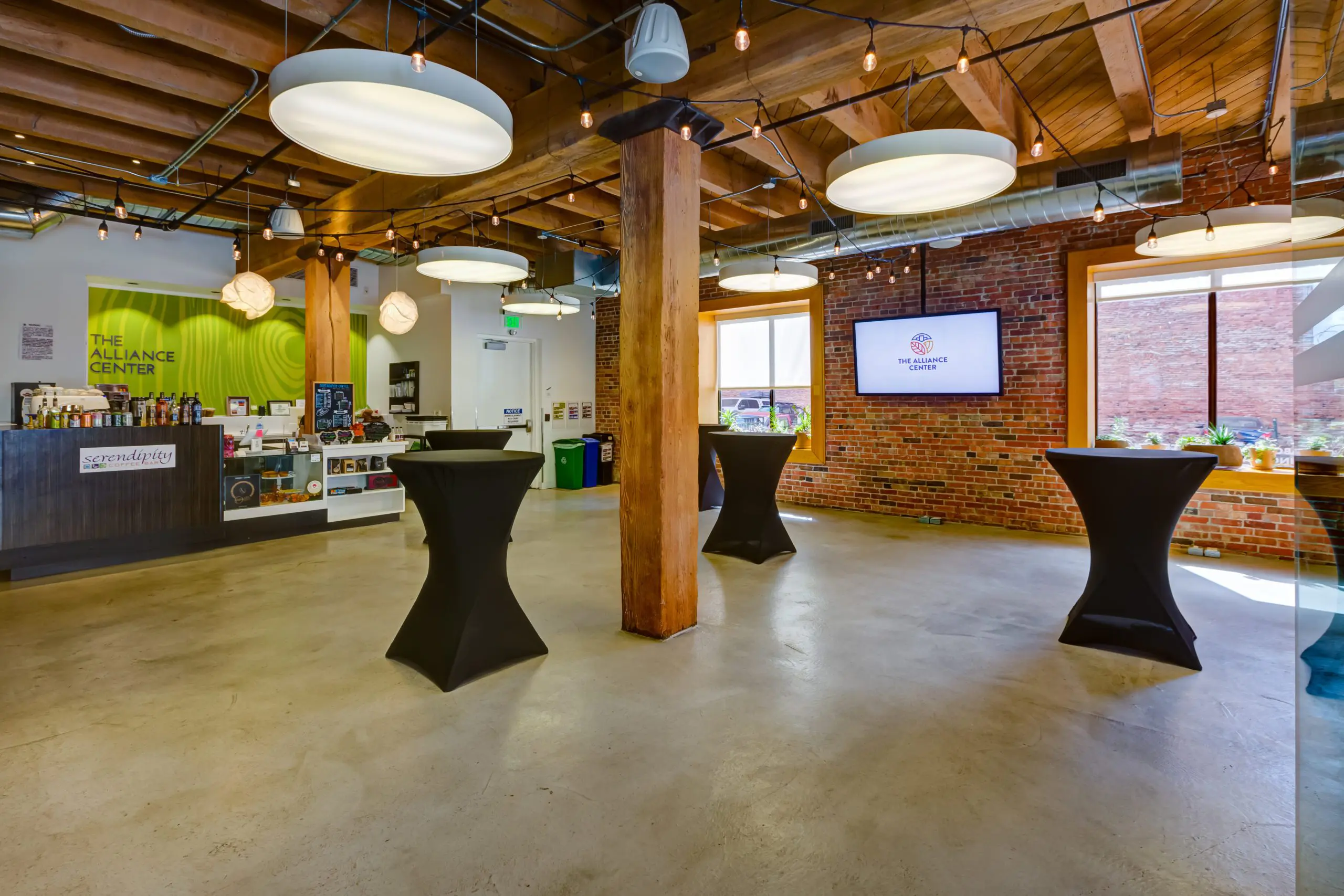 The Hub Cafe is perfect for your networking event or casual training, complete with bar service from our Serendipity Coffee Bar. The sweet spot for Hub Cafe capacity is 60 people and is only available for use after 3pm on weekdays. This space has six large windows and receives lots of natural light.